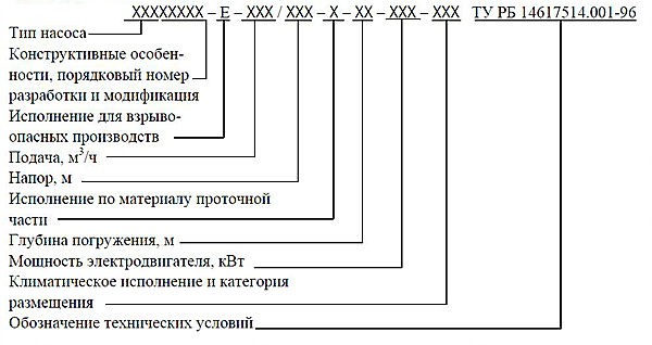 Для полупогружных насосных агрегатов типа ГДМП устанавливается следующая структурная схема обозначения: