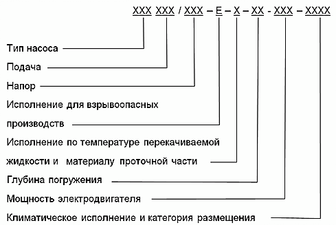 Для полупогружных насосных агрегатов типа ЦМП устанавливается следующая структурная схема обозначения: